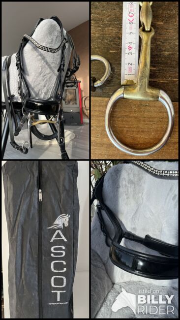 Curb bit presteq glitter patent Wb Full snaffle bit - Only 5 x worn presteq curb bit for sale only 1 hole per side has been added, otherwise you will look in vain for defects. Lacquer, glitter - simply beautiful, only for sale due to sale of the horse with a heavy heart Absolute fixed price Incl. insured shipping 185€‼️‼️ For this including ‼️ -curb (V-belt must be reordered if necessary, have always ridden it without, is simply clicked into the browband by the manufacturer) -2 pair of reins - curb bit incl. chain and chain guard - double-broken double bridle olive -curb bag