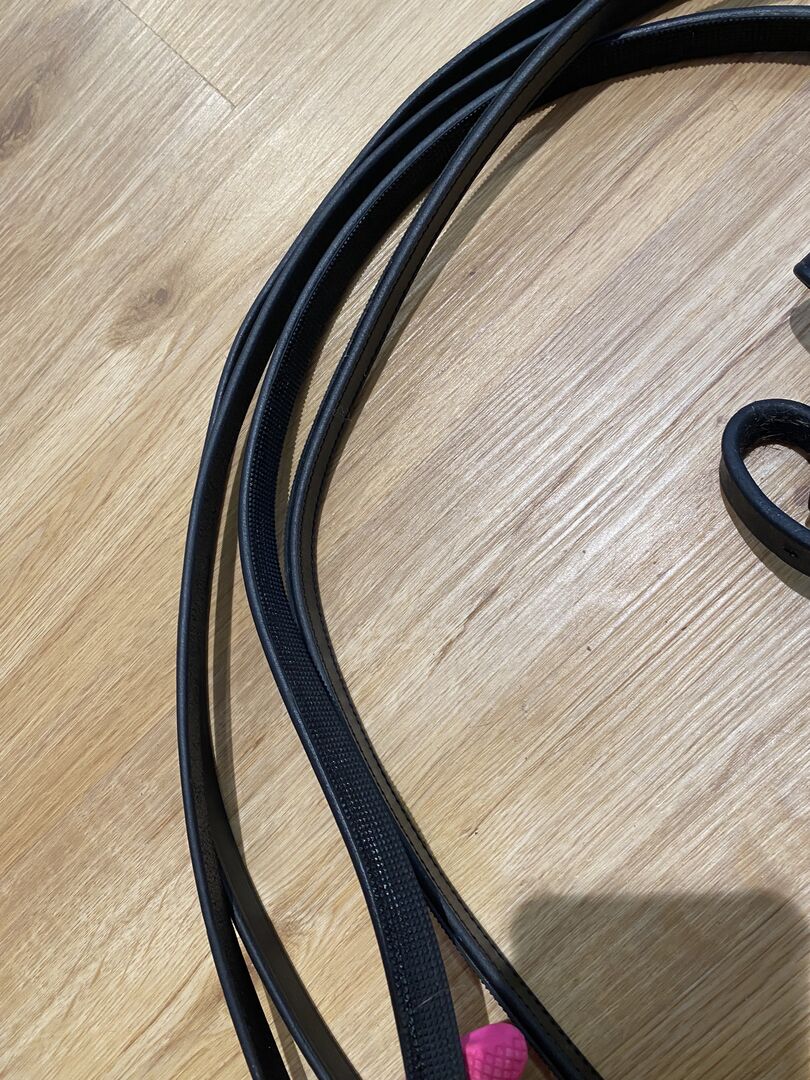 Curb reins set WB - Collar reins set, a pair of leather reins and a pair of leather rubber reins. In mint condition.