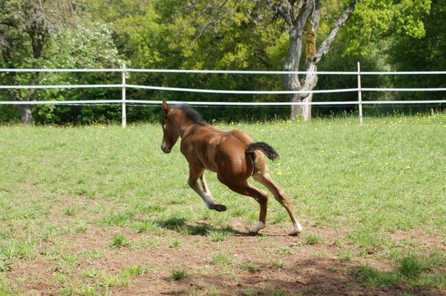 Curious, well-built Quarter Horse mare - Location: 66916 Breitenbach Katie Be Gunshine - this beautiful Quarter Horse mare, born 4.2025 with an estimated final height of 148 to 153 cm, is already curiously exploring her surroundings and loves to show off her great movements. Katie is a cuddly, outgoing young horse with power. Correctly built with strong muscles. The mare is growing up in a herd with horses of the same age, knows the foal ABCs and is vaccinated and wormed according to her age. 5-panel n/n and IMM n/n. Her pedigree makes the heart of every reining fan beat faster. Grays Starlight, Shining Spark, Dun It With A Twist, Peppy San Especial are in her pedigree. Her sire, Walla Walla Gunshine, was successfully shown (LTE: 20000 $). Katie's dam is a daughter of Twisten Two Step DR. If you are looking for a great young horse for competition and/or leisure riding, Katie is the right horse for you.