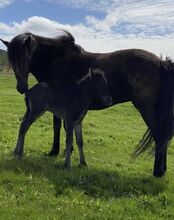 My lovely Icelandic black mare Sandra is for sale. Her trot has a clear beat and her canter is lively. The tölt is callable with an ambitious, experienced rider, but she still lacks the strength and training for long distances. She is lovely to handle and under saddle. She knows how to be ridden in the arena, oval track or cross-country and is always motivated; she is registered in Stud Book 1 and has had two foals, which means that her training is relatively late. I am looking for an ambitious rider who appreciates her nature and would like to develop further with her. Easy Exem available. Sandra is currently in training and can be ridden on a trial basis. If you are seriously interested, please contact me with your name and telephone number