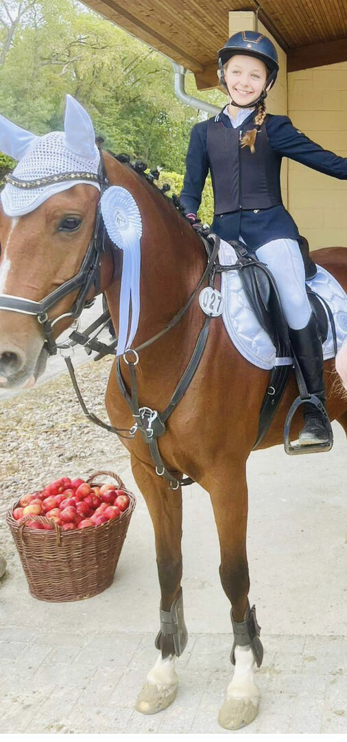 dear jumping pony - Dear sport and leisure pony Gida is a 13-year-old Dutch-bred pony mare with a height of 1.47 cm and a particularly pretty appearance. She is experienced in competitions and has been shown by our children in dressage and especially in show jumping. She is always motivated on the course and has a good basic speed, making her easy for children to ride through the course. She is an absolute reliable pony, whether on the arena, in the hall, in the field or in unfamiliar surroundings, she is always easy to handle. Gida also knows how to ride with a neck ring and without a saddle. She is particularly easy to load. At the moment she is in the box at night and in the paddock during the day. She can also stand in the pasture without any problems and is very compatible with other horses. As our daughter has outgrown her, we are looking for a new, loving home for Gida.