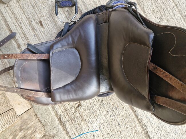 Deuber Baroque School Saddle - I am selling my Deuber saddle because it is not ideal for me and my horse. It is very comfortable and a visual eye-catcher with its suede leather and was checked by the saddler in the spring. The seat is size S2 and the chamber width can be adjusted with an Allen key. This makes it ideal for young horses as it grows with them. The saddle can be used with stirrup leathers and stirrups (baroque). The saddle can be taken for a test ride if the purchase price is deposited. I do not want to send the saddle, it can be picked up in Altnau-Bischofszell or Heerbrugg. The price is easily negotiable. More photos on request