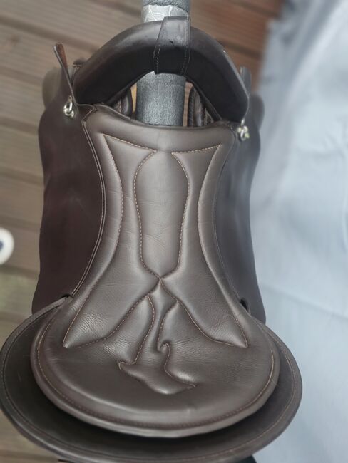 * Brand: Deuber Startrekk * Adjustable fork for individual adjustment * Possibility to attach narrow fenders or English stirrups * Equipped with English girth straps * High quality leather with fine decorative stitching S2 saddle length approx. 56cm