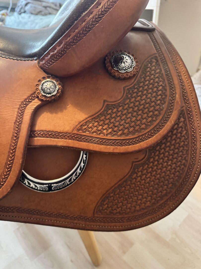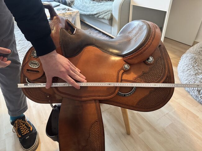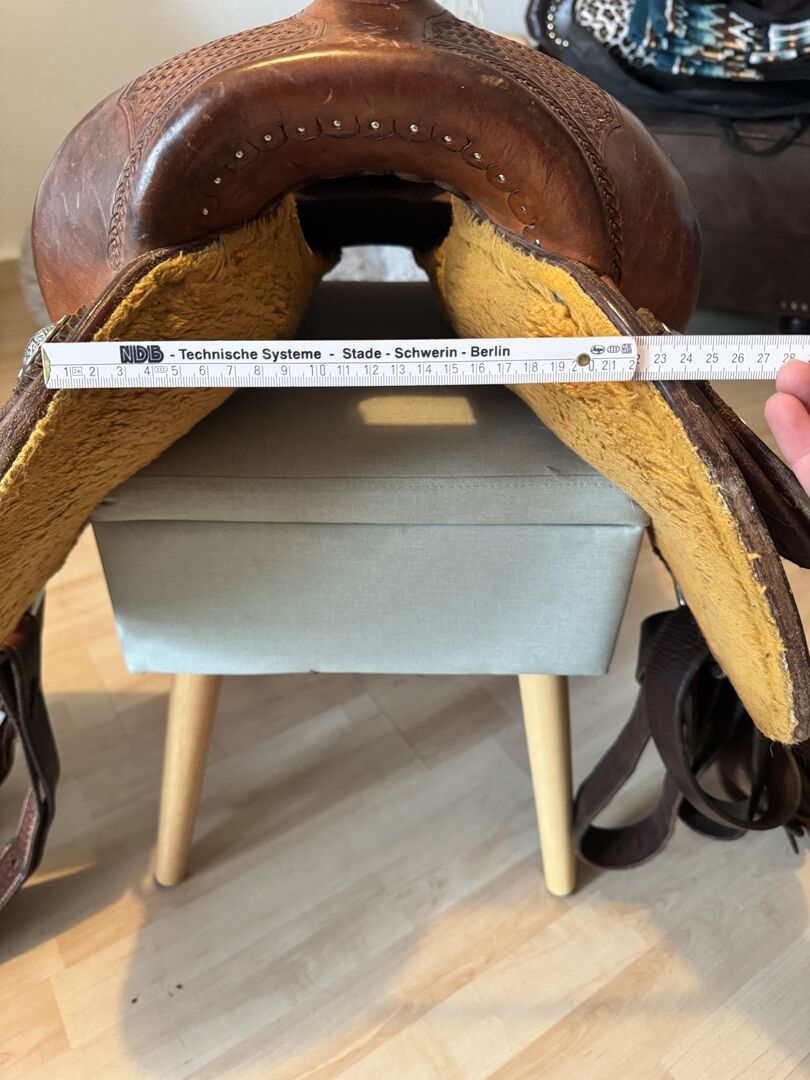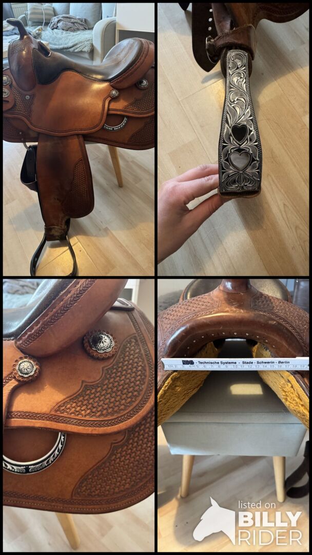 Urgent sale of my beautiful western saddle from Diamond C in the color Havana, smooth leather seat, butterfly, incl. off billet, tie strap.
