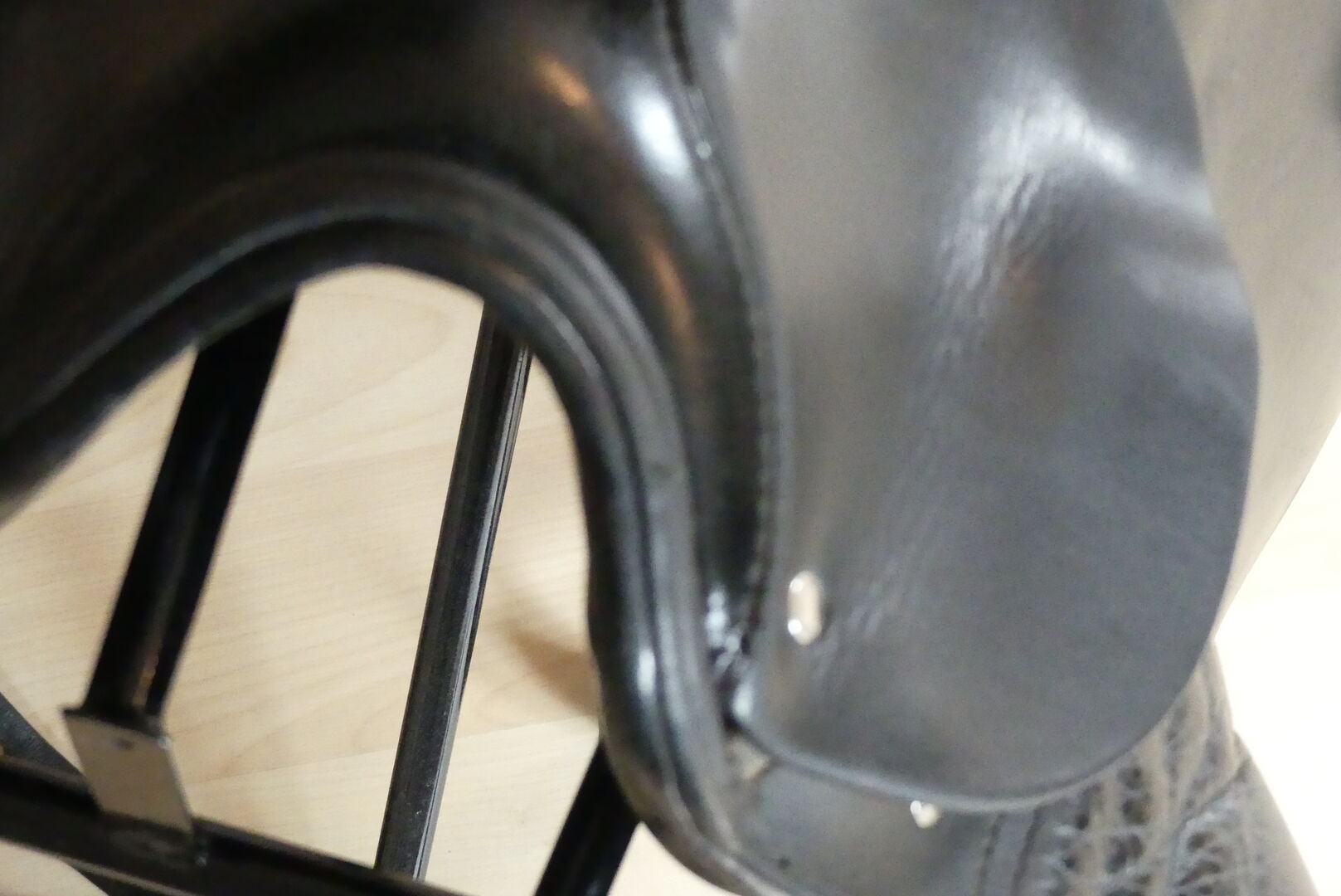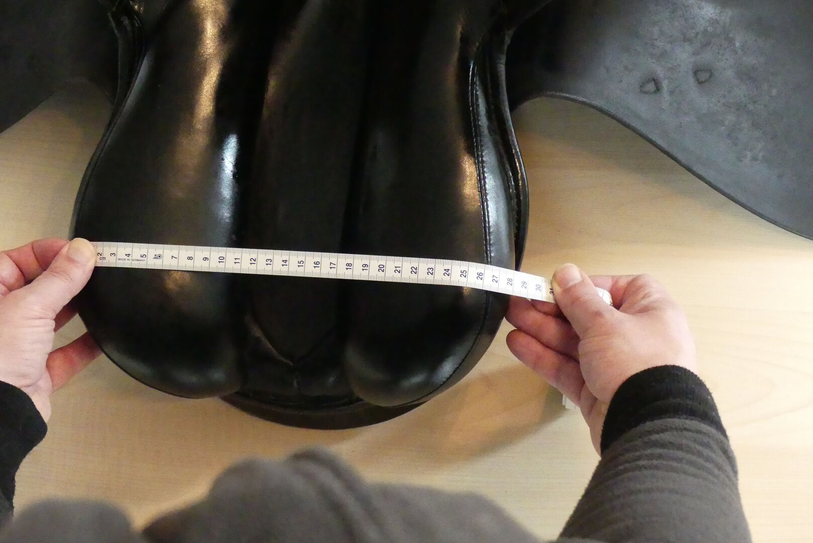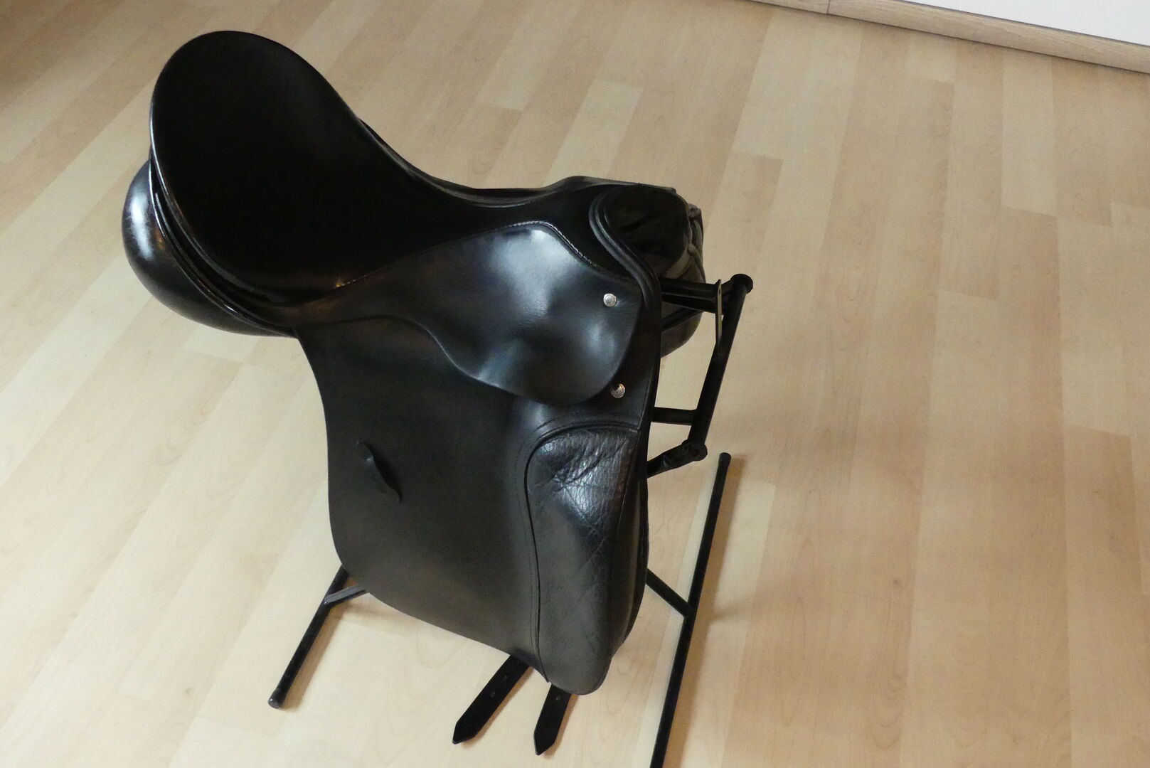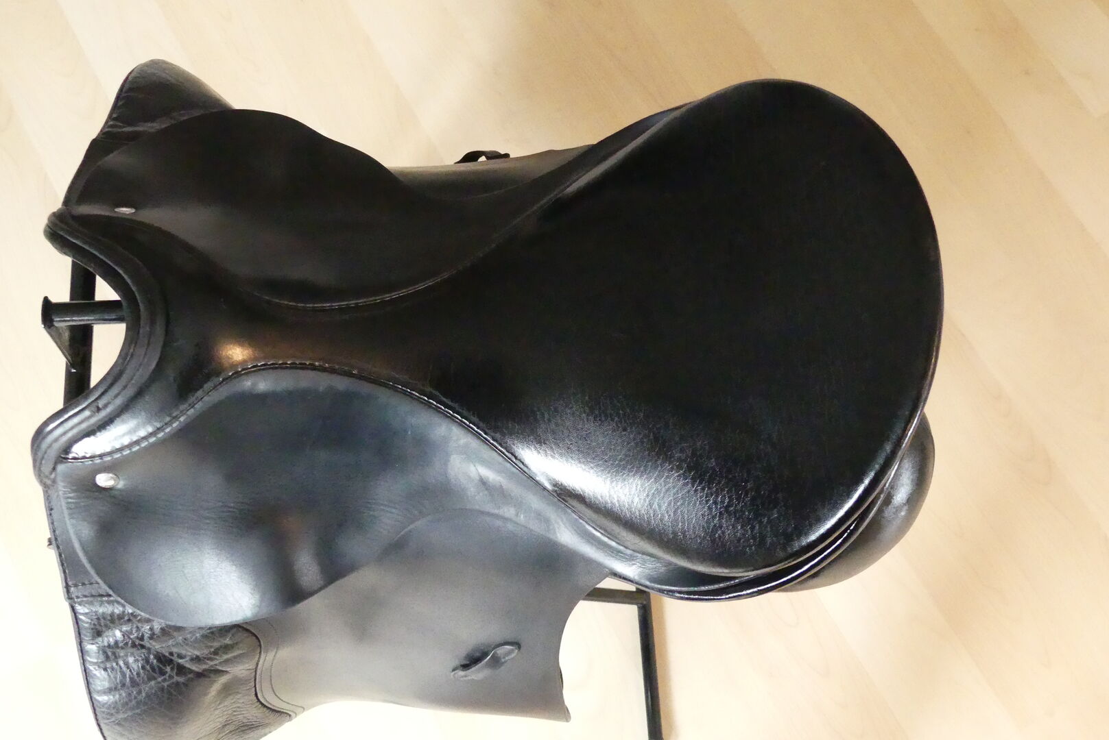 Dressage saddle - Offer here a dressage saddle from the Passier company. The model is an A-Tempi with 17" and a chamber width of 32. At that time, larger pommels were fitted on request when buying a new saddle. The saddle was on a horse with little withers. There is a small damage to the leather on the pommel (picture). Otherwise the usual signs of use of a 16 year old, but very well maintained saddle. The saddle has long stripes which are also in top condition. The saddle is delivered with a Kieffer saddle cloth (grey/black), a short girth and dressage stirrups. The shipping costs are paid by me. Since this is a private sale, a warranty or return is not possible.