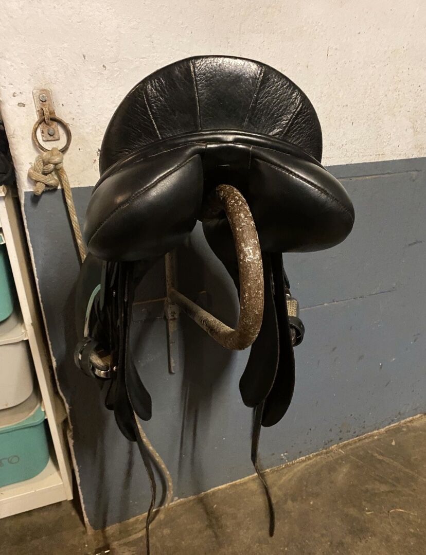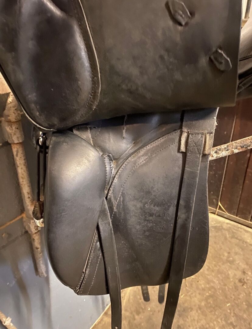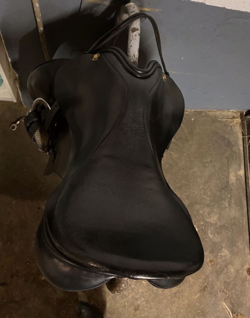 Dressage Saddle 17,5" Ainsley Integra Dr. - Here I ask a used dressage saddle from the company Ainsley. Against payment of costs I would also send him. The girth straps have slight signs of age and would need to be replaced in the long run. Very comfortable saddle with deep seat. I am giving the saddle away as I will be switching to a jumping saddle. 17'5 inch, black, leather, long gullets (without stirrups). If you have any questions please contact me. Greetings Nina