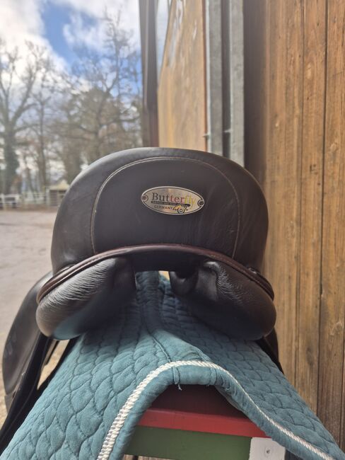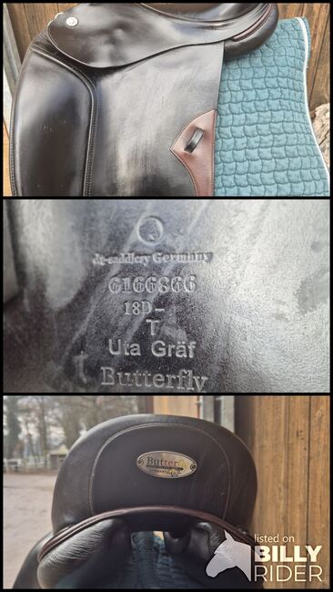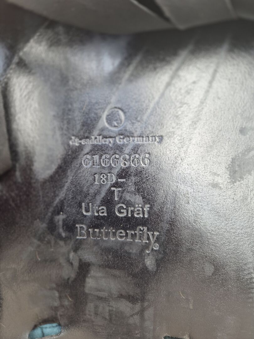 Dressage Saddle Butterfly Uta Gräf - Well maintained saddle with slight signs of wear, deep seat, Velcro panels, short panels. Does not fit very narrow horses and horses with very high withers.