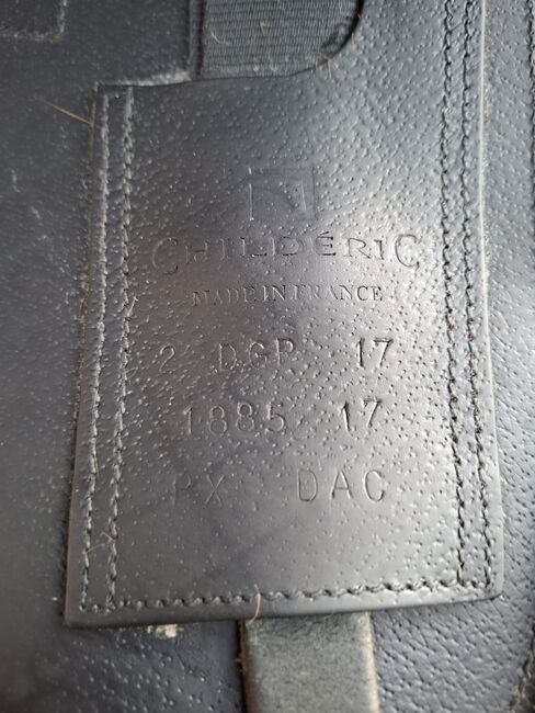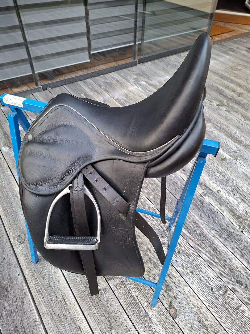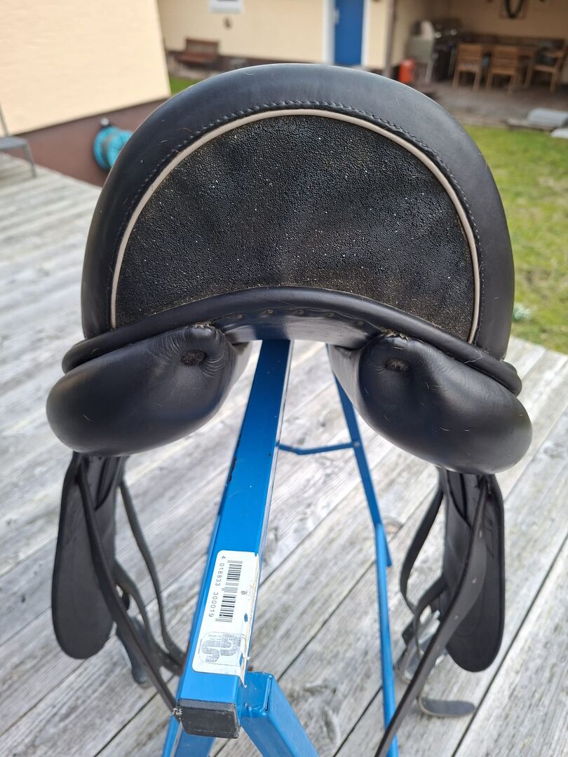 Dressage saddle Childeric DAC DGP 17", Swarovski, light stitching - Childeric dressage saddle DAC DGP 17" in black with Swarovski crystals on the pommel and light-colored decorative stitching