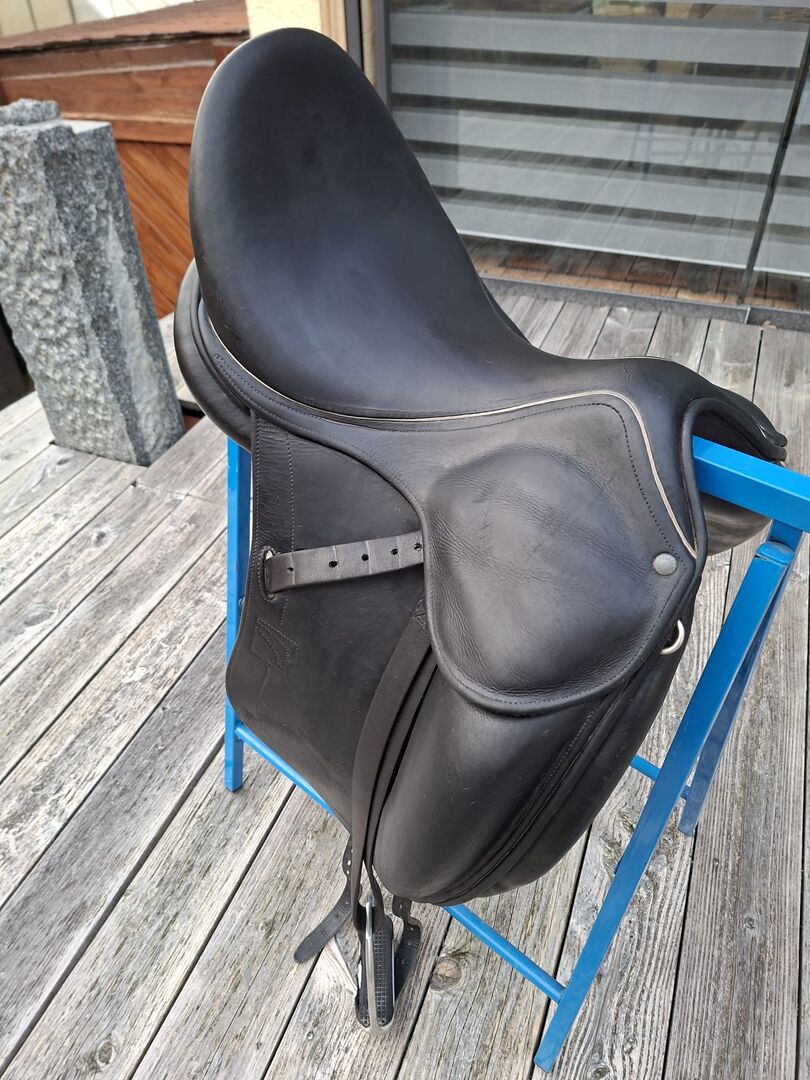 buffalo leather Semi-deep seat Childéric saddle tree Mono saddle flap Straight flap Long bars