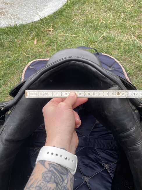 Measurements and seat size can be seen in the pictures. For information: the saddle was on a sporty Friesian mare with a short back