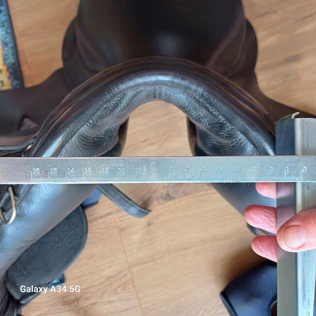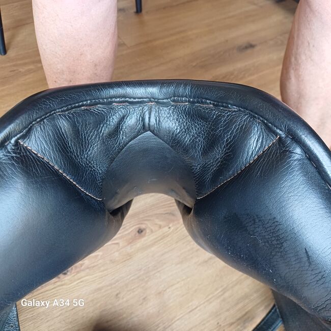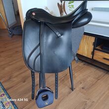 Dressage saddle Hof Sattlerei Looschelder - I am selling my dressage saddle here as I have switched to a baroque saddle. Condition as in the photos. I loved it very much but it no longer fits my rather baroque Friesian mare. The saddle has a small spot on the left saddle flap Photo a small place, which does not look quite nice. It probably came from a press stud on the riding boot. The saddle is sold without stirrup leathers and stirrups.