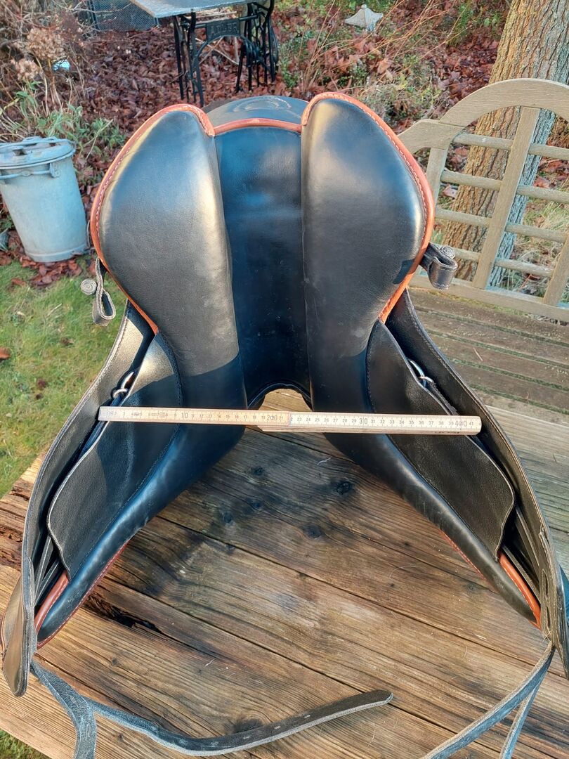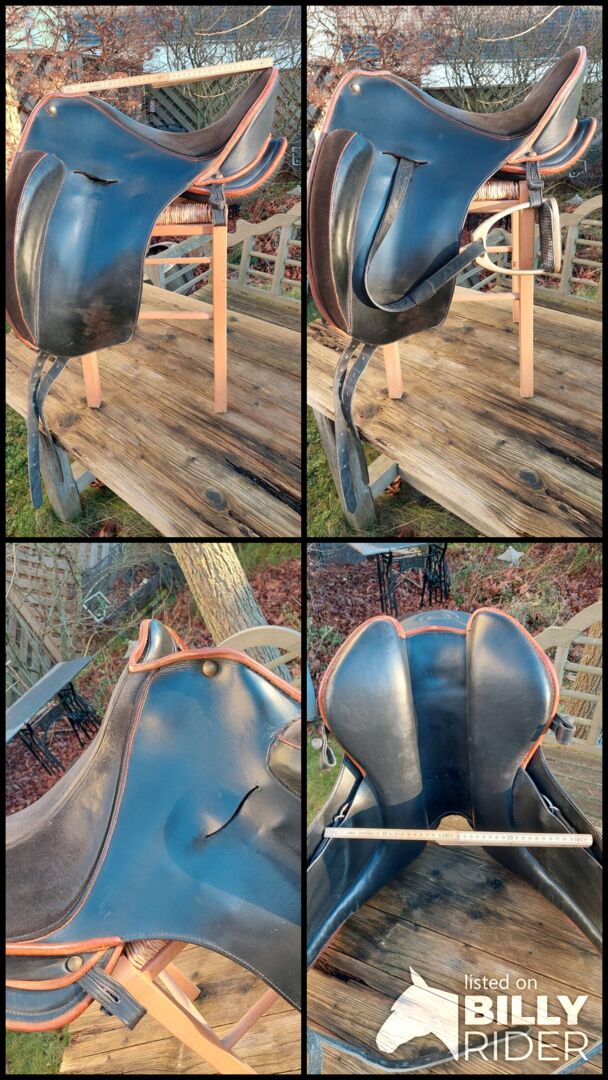 Dressage saddle Omega Bentaiga - Dressage saddle Omega Bentaiga , black with brown piping , suede seat 17' , very good condition Stirrups available for 50€ if interested The saddle can be tried at my place.