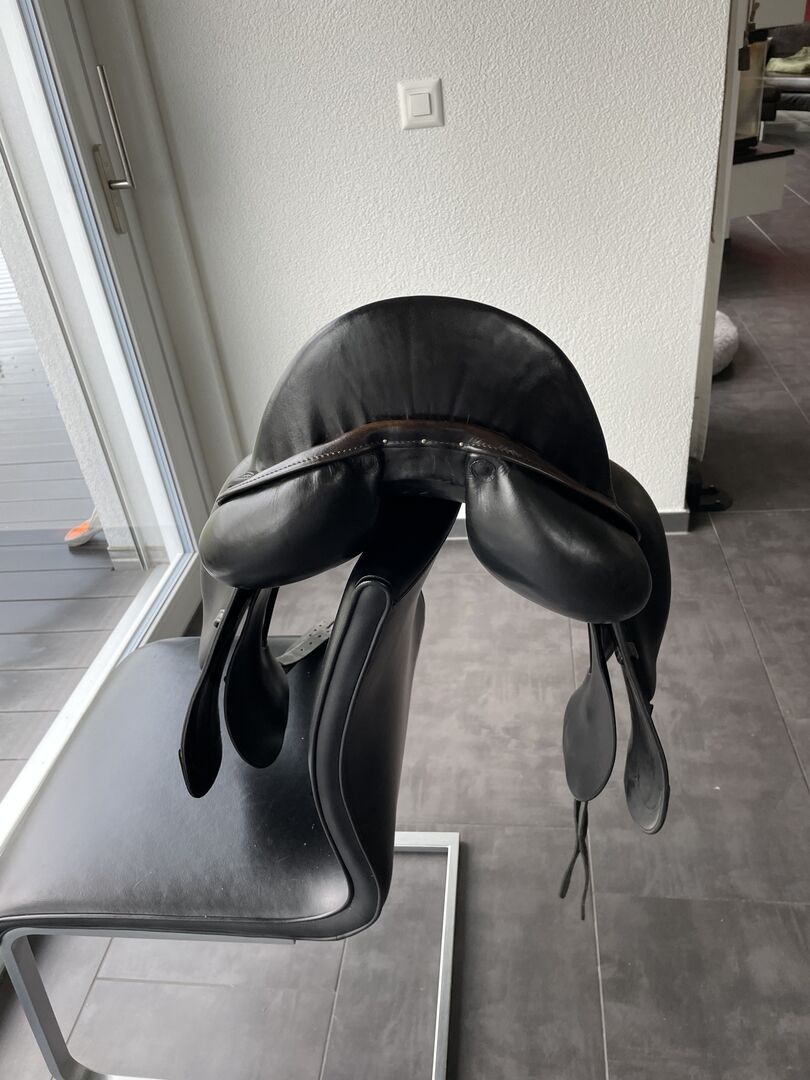 Dressage saddle Peter Menet - Top dressage saddle by Peter Menet, year 2016, saddle number 16 254, seat size 17", saddle flap N (normal), width +2, new price 4700.