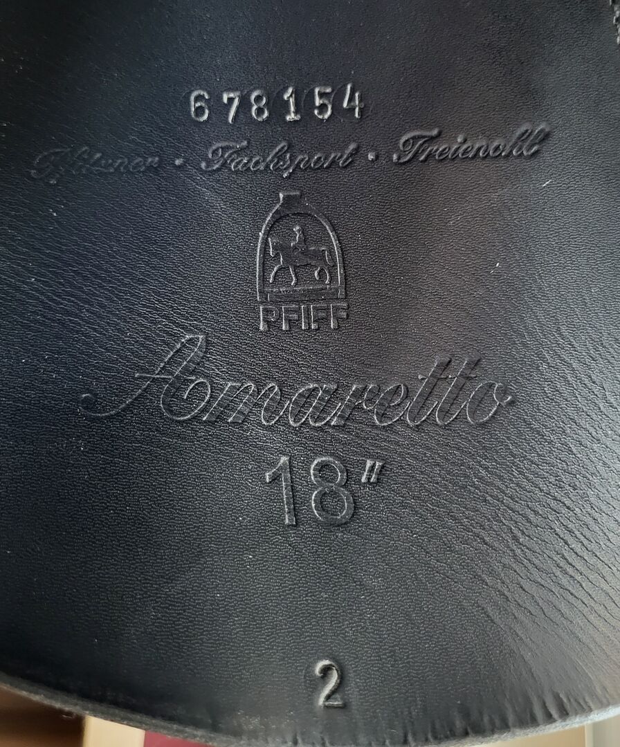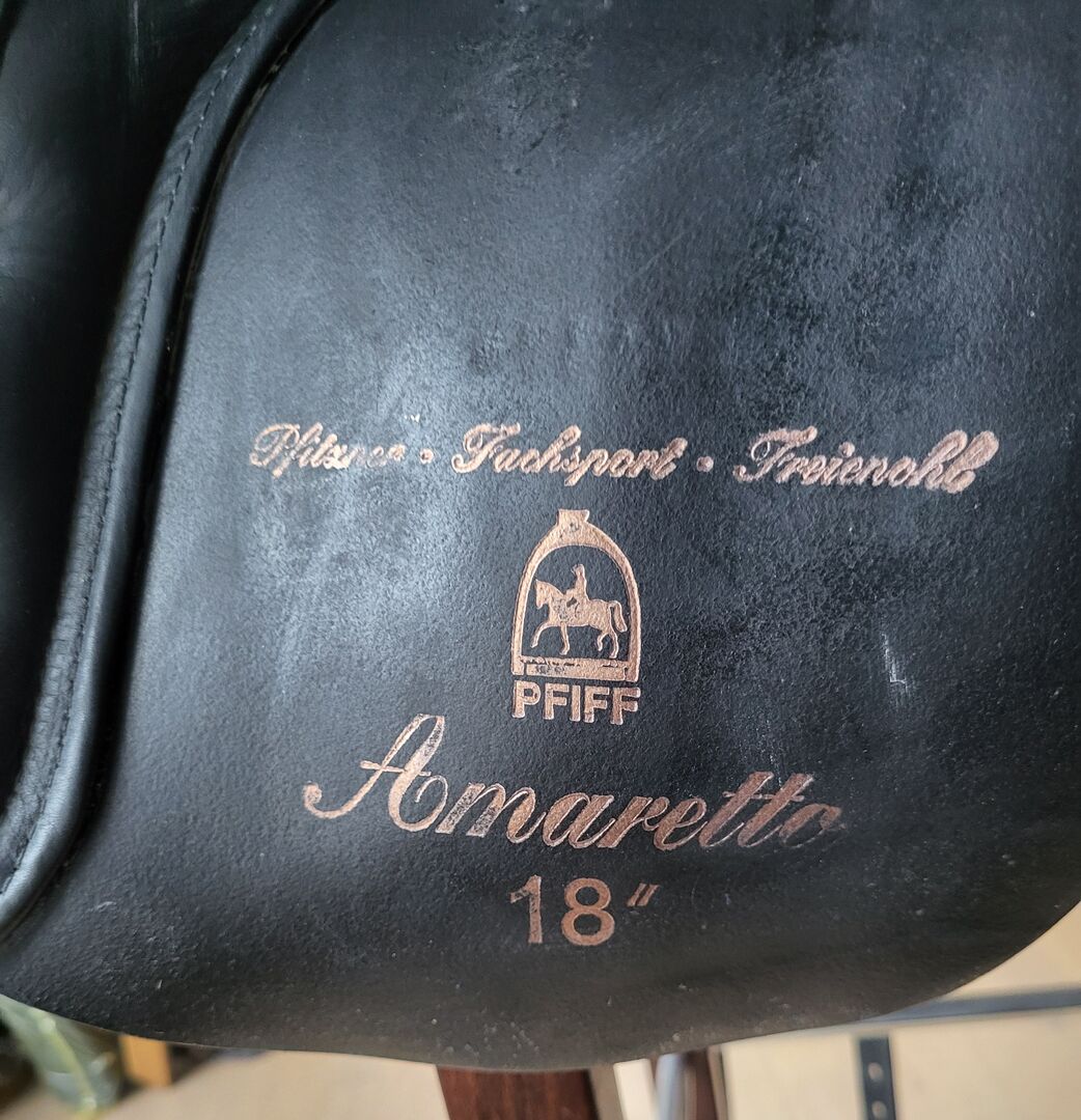 Dressage saddle Pfiff Amaretto black 18" KW 2 **top condition** - I am offering a Pfiff Amaretto dressage saddle in black in 18" and chamber width 2. Very good, almost new condition as it has hardly been used. Unfortunately it doesn't fit my young horse, so I'm selling it with a heavy heart.