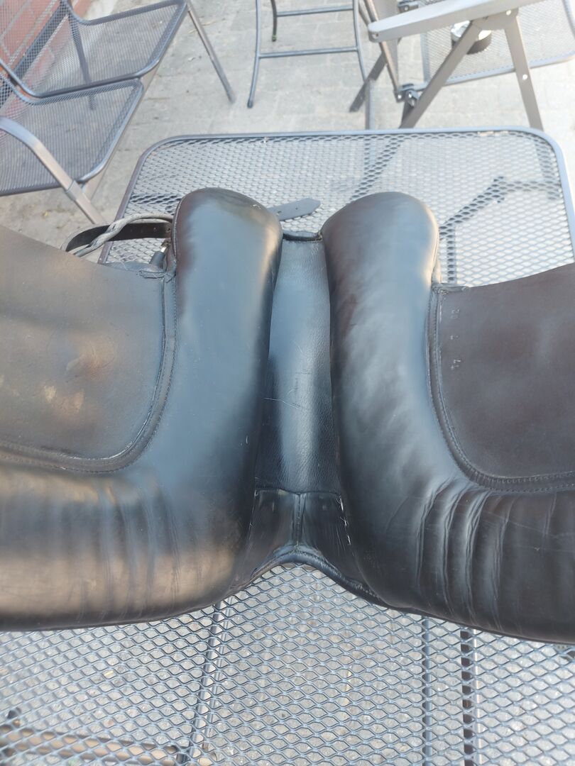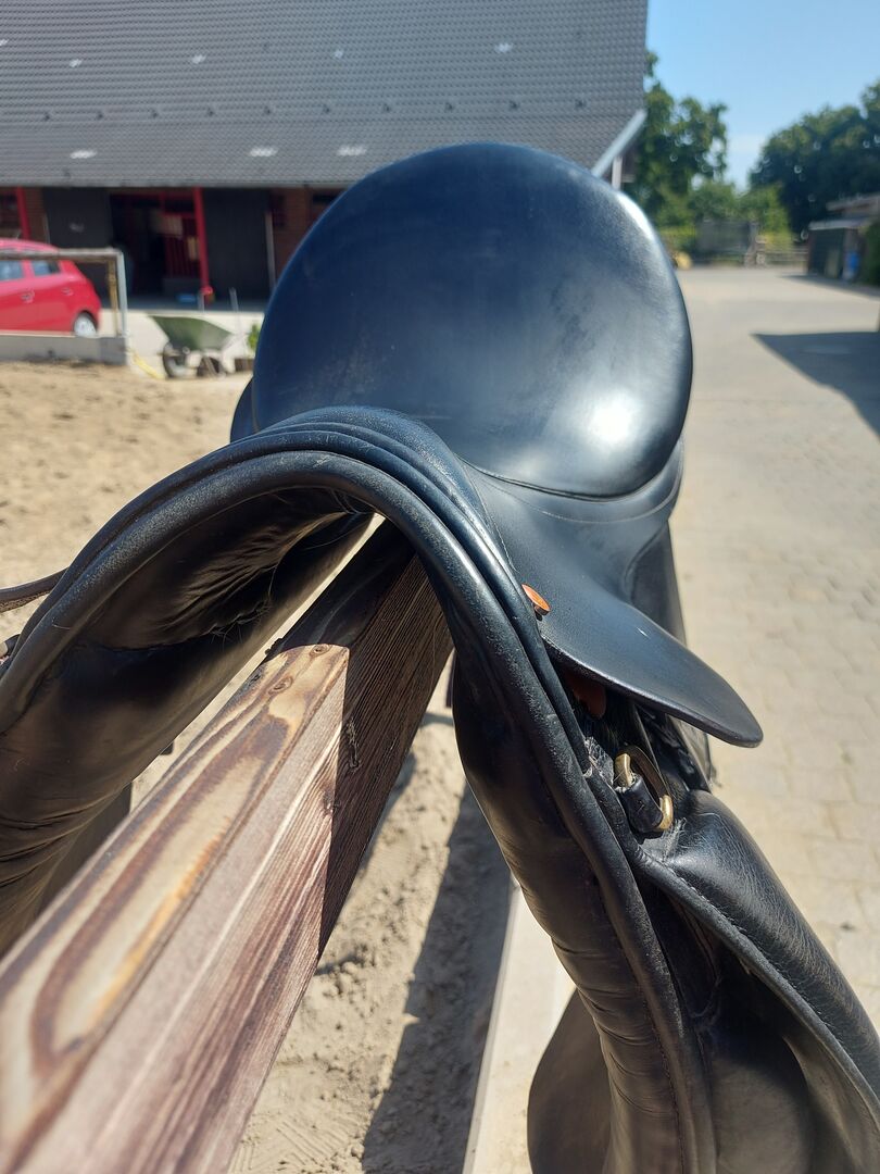 Dressage saddle solibel by Busse - Hello offer my Solibel dressage saddle . Had bought him ca 2019 for another horse and had used him now transitionally for my pony unfortunately he fits the mare but not optimal. Unfortunately you can no longer see the model I would guess Athena 2002 from what is still readable . The saddle has usual signs of use but is otherwise undamaged and immediately usable again. You still have questions? Then please contact me. Shipping within Germany possible !