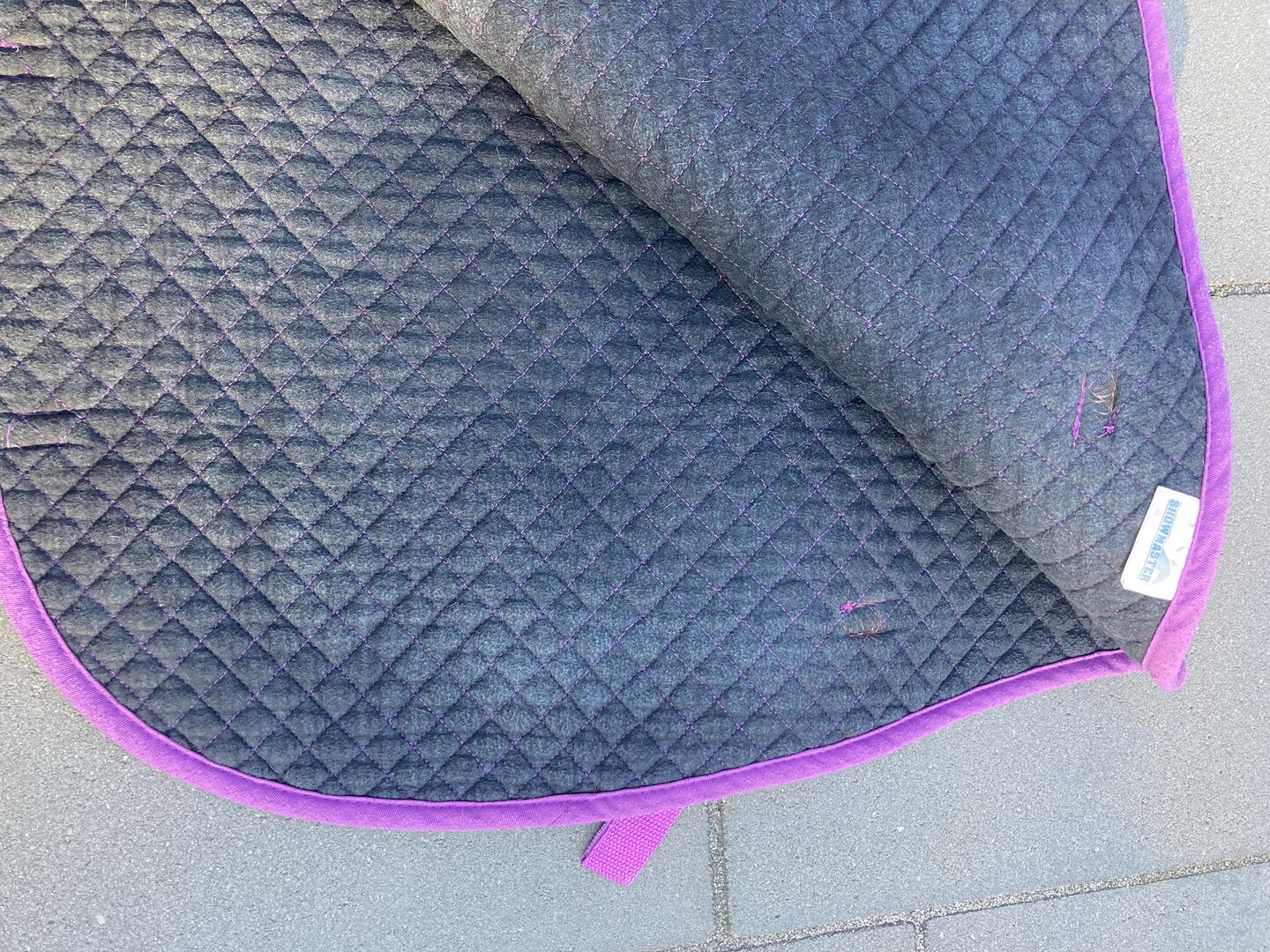 Dressage saddlecloth - The saddle pad is in very good condition. Both loops + the Velcro to attach the saddle pad to the saddle work / stick very well. The only signs of use come from washing (small lint on the fabric).