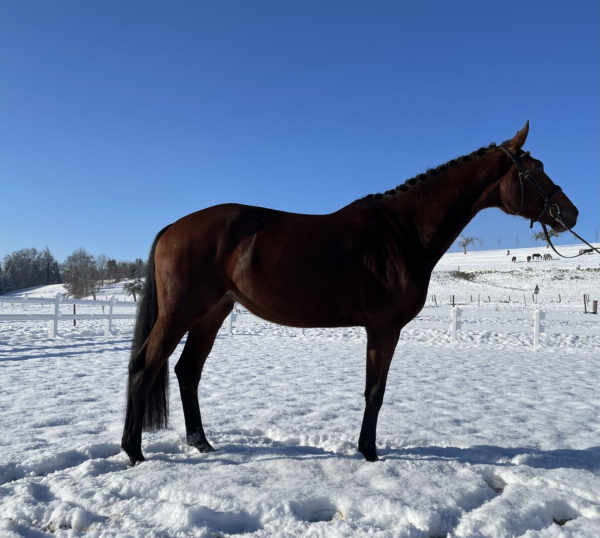 Only 4 months under saddle, the 2018 born , 174cm gr.daughter of the legendary Fürstenball presents herself with the highest rideability, steady uphill tendency, tactful with above-average movements: a very good walk, a swinging trot and already shows enough uphill tendency and the engine in the right place in canter. She is not stubborn at all, a lamb in handling and likes to cooperate under saddle. Daily motivated and eager to learn she shows her above average rideability and movement!