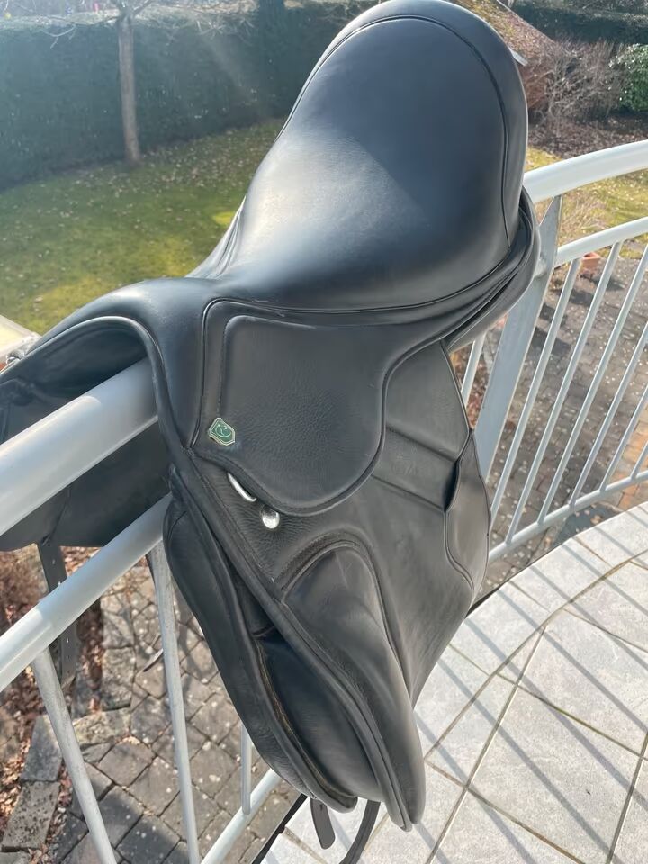 hier verkaufe ich meinen Dressursattel der Marke „My Green Horse“, der sich in einem sehr guten Zustand befindet. Meinem Pferd passt er leider nicht richtig, weswegen er nur ein halbes Jahr in Gebrauch war. Er wurde trocken gelagert und stammt aus einem Nichtraucher-Haushalt. Da ich bald umziehe, ist er weit unter Wert zu verkaufen. Der Neupreis lag bei 3300€. Er wird vor Verkauf selbstverständlich nochmal gründlich gereinigt und poliert.