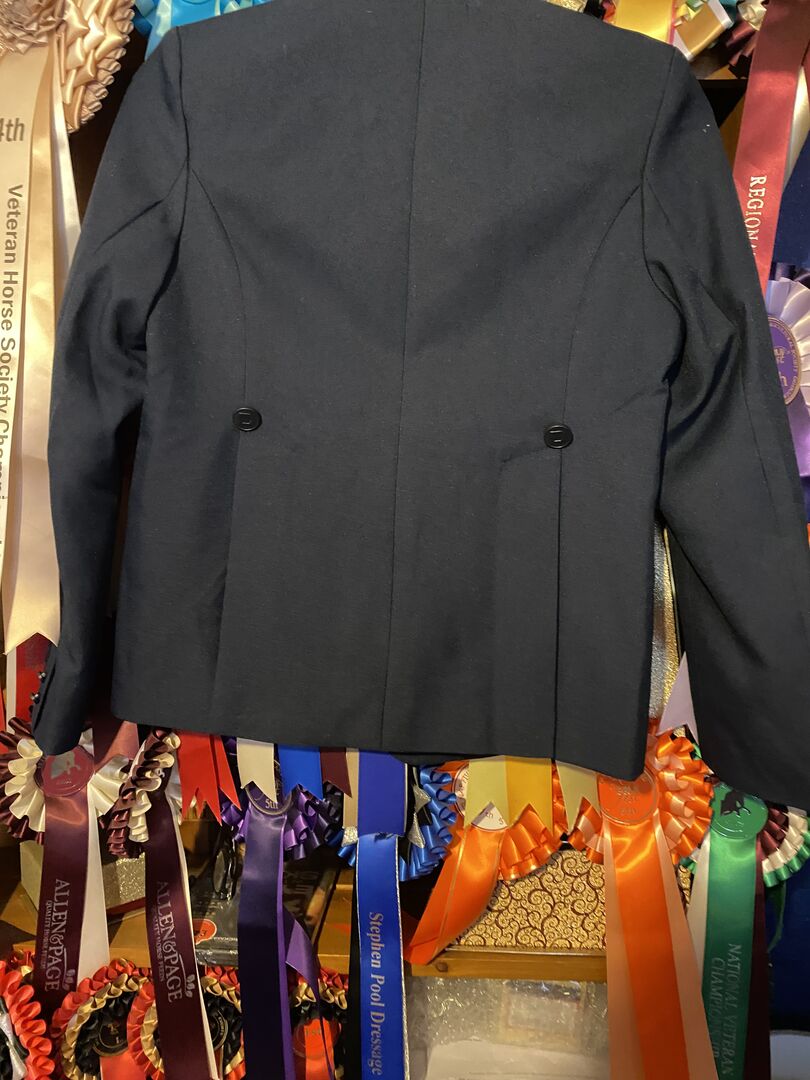 Dublin Show Jacket burgundy collar and trims. Jacket has never been worn but has lost a button on the front. It’s nice and light weight. Child size 13/14