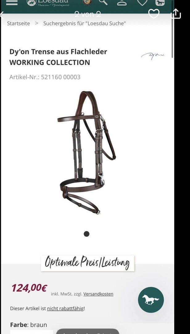 Hi Bella, I am interested in your ad 'Dy‘on Trense Flachleder Working Collection WB braun / Dy‘on'. Please contact me!