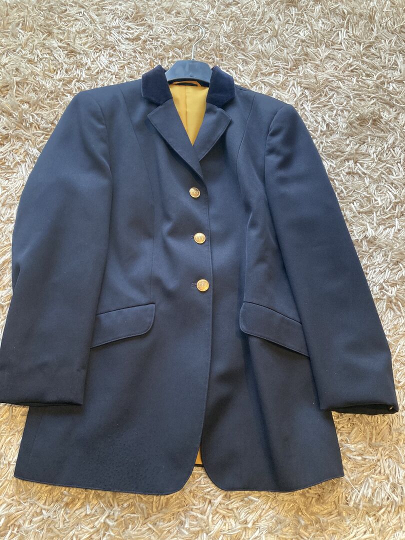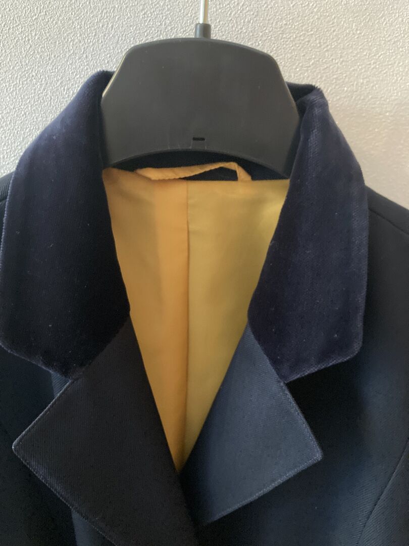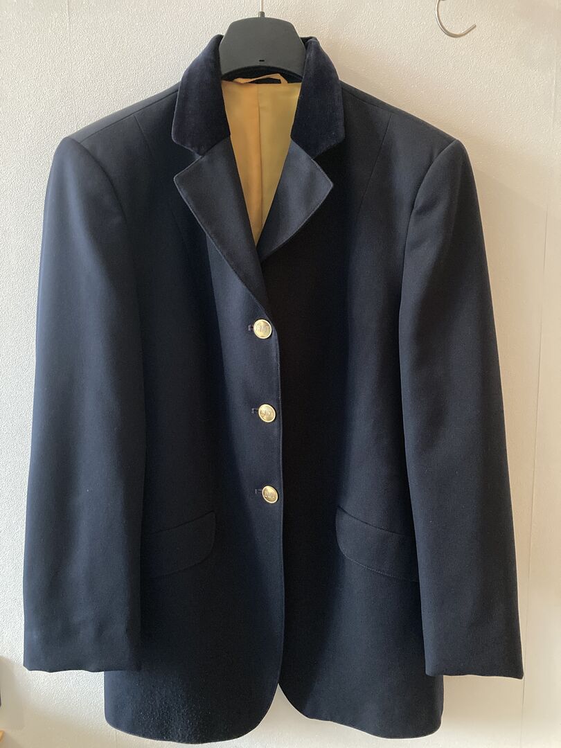 ELT tournament jacket dark blue - Offered is a great tournament jacket of the brand ELT in dark blue with fine velvet collar. According to ELT, the size is 75, but can also be worn well with a size M.
