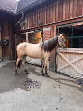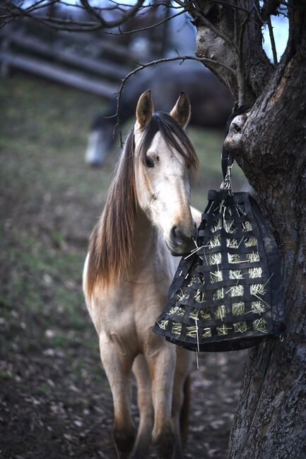Tortola turned 3 years old at the end of January and is currently regularly worked by me in hand on the cavesson (going into corners, mobilizing, counter and shoulder-in, backwards, etc.) and lunged, as well as regularly taken out into the field as a hand horse, where she is always and everywhere super fine in handling. She is currently blind-buckled and flexions are started. She is also already used to a pad on her back.