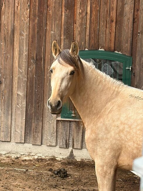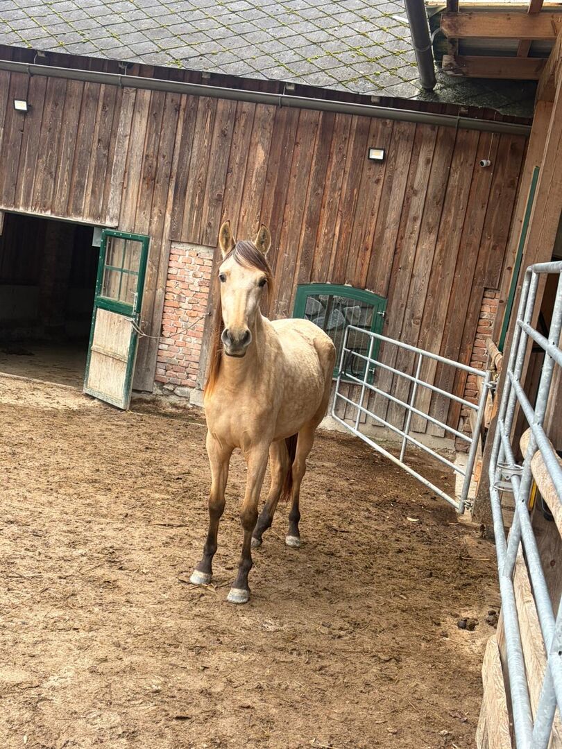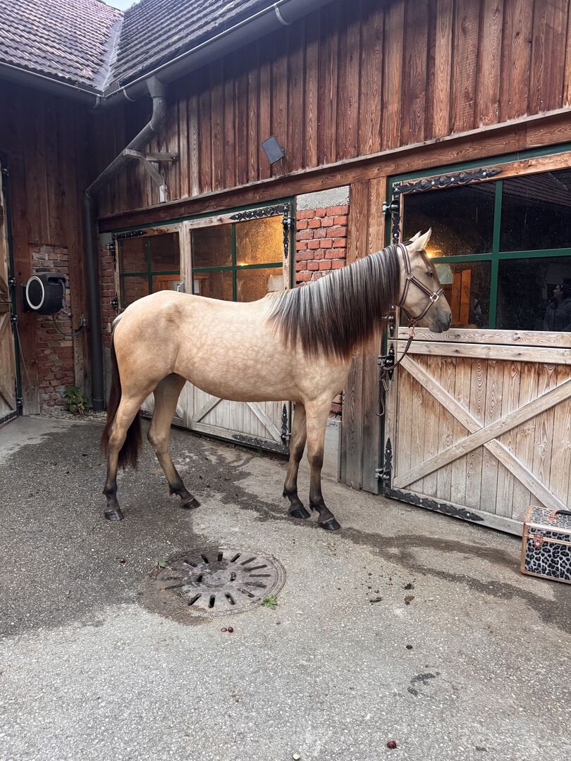 I am selling my sugar-sweet PRE mare in buckskin cream.