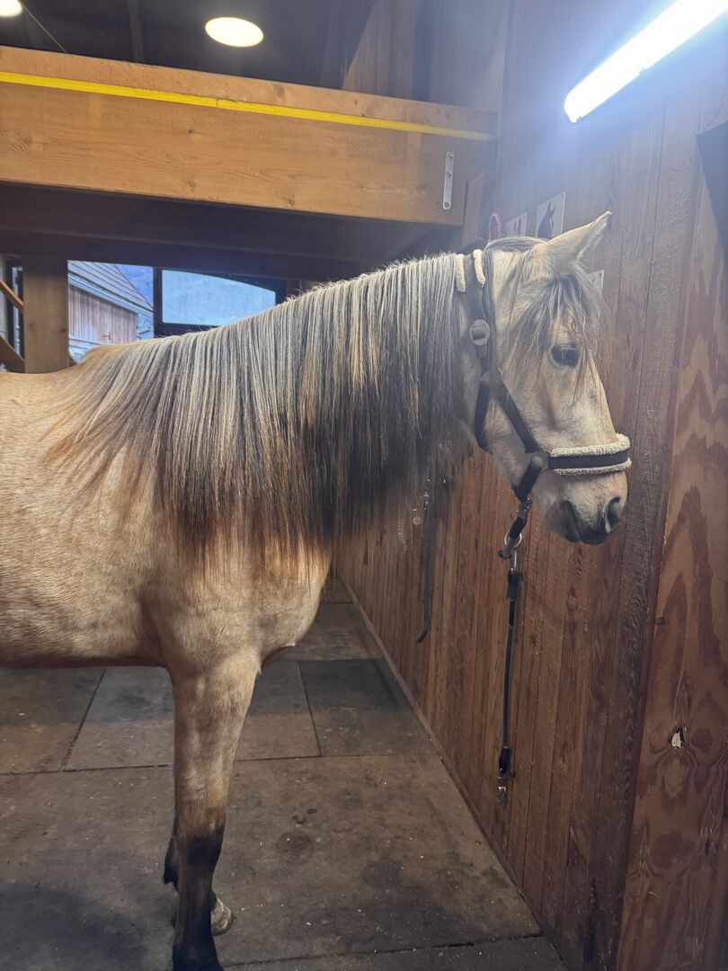 She has been with me since she was one year old and is very well socialized and used to being in an open stable in a mixed herd with all breeds and age groups and can stand up for herself but is never mean! She is also very robust despite her delicate appearance and I haven't even had to cover her up in this year's extremely cold weather.