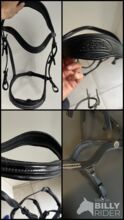 English combined snaffle from Hilbar - Sell my inbenutze this year at Equitana bought English combined bridle of Hilbar Royal exclusive. Browband with black lacquer, noseband with silver edged black stones and rhinestones. Robust high quality workmanship and buckling.