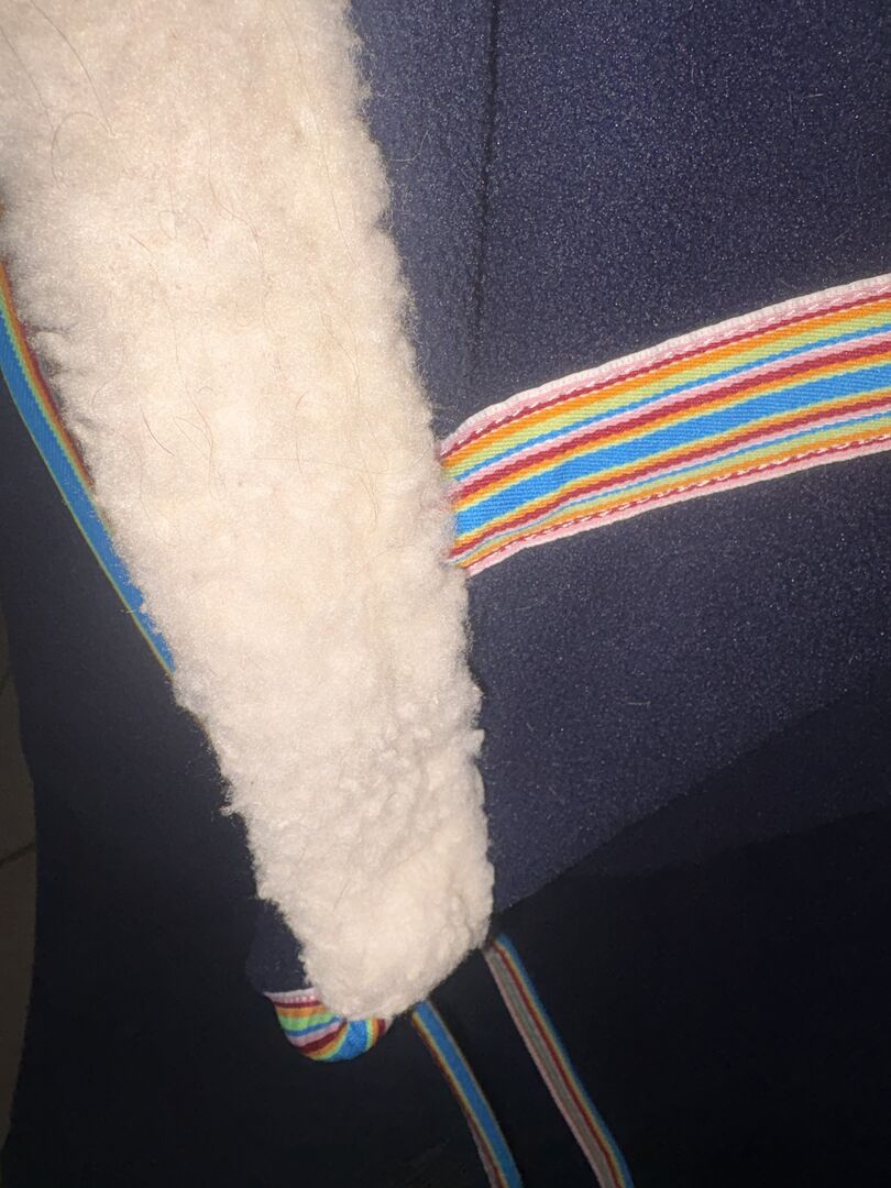 - Size: L / Full (corresponds to approx. 135 cm back length) - freshly washed - hardly any signs of use except for a few hairs - With cute pumpkin unicorn print 🦄 - Rainbow edging 🌈 - Withers padded with faux fur