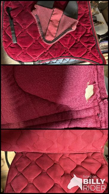 Equest saddle pad Bordeaux, fly hood Anky Soundproof - Bought second-hand, never used by me. The saddle pad has a small hole on the underside, see pictures. Size dressage and WB.