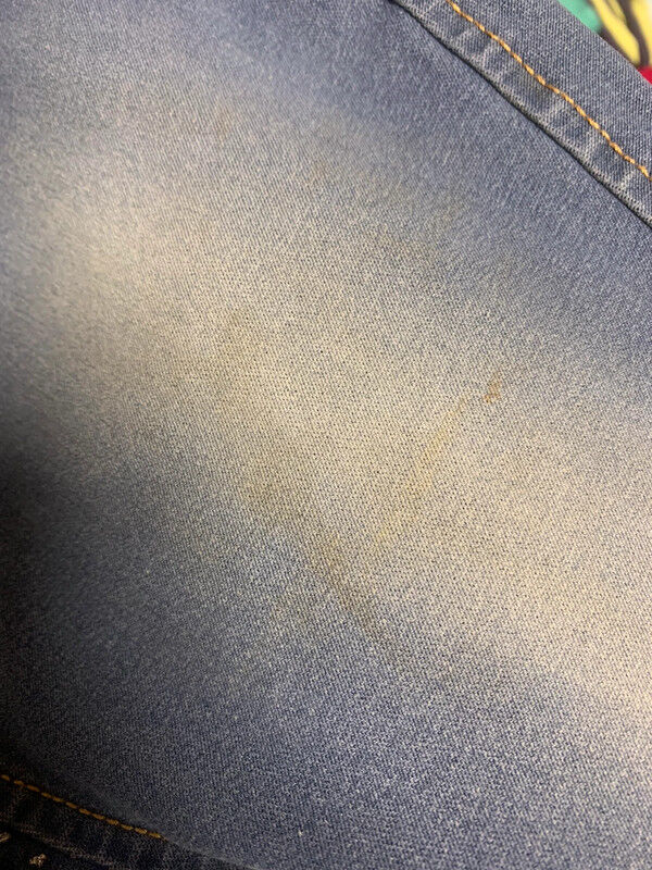 good condition, as the grip in the crotch has come loose (according to my daughter, the pants still work) and untreated shadow stains on the left thigh - see picture