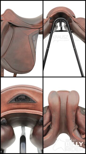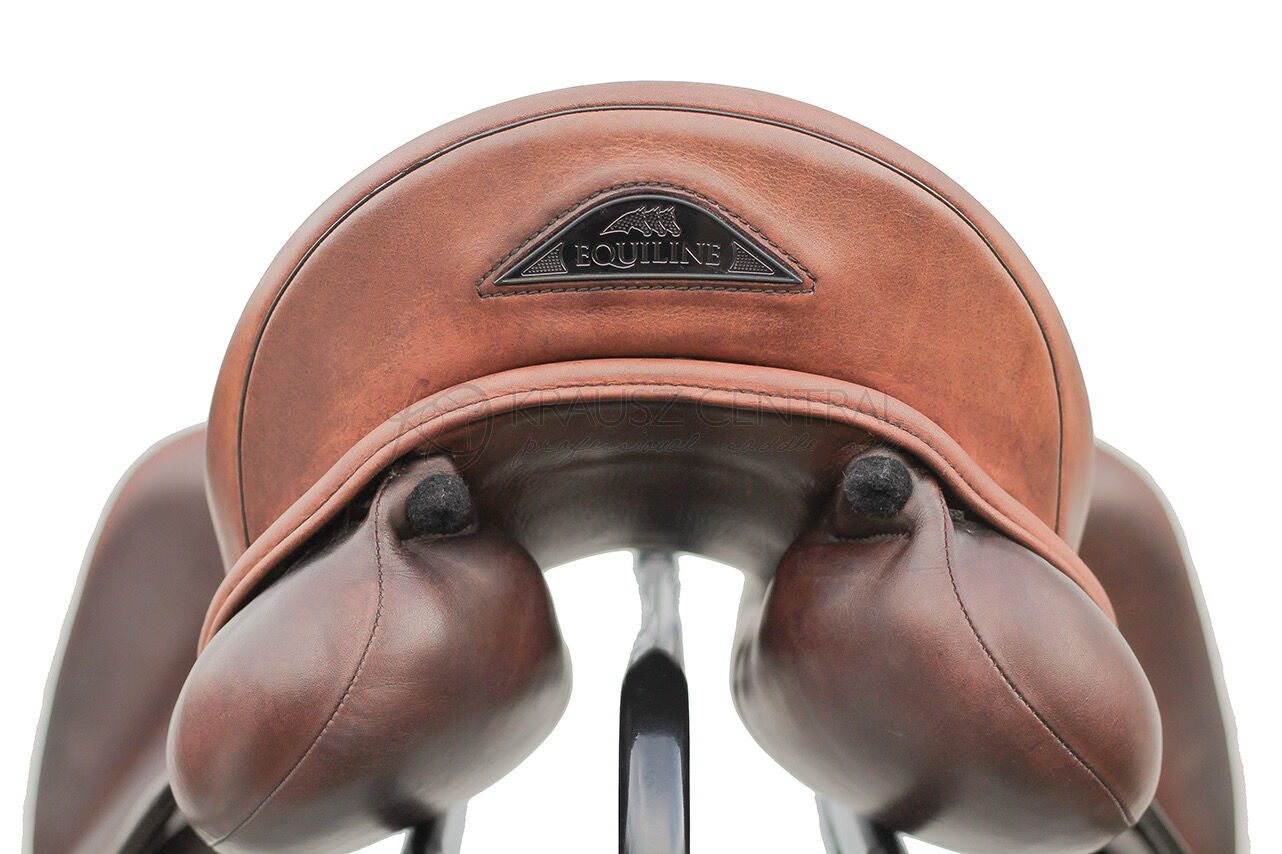 Equiline dressage saddle 17 inch - The Alissum saddle is a mono-blade dressage model built according to a new riding and fit concept. Thanks to its new seat and the high position of the fixed outer panels, the saddle improves the rider's balance during the different gaits, leaving the knee completely free. Thanks to the new design of the saddle flap and the high external break, the Alissum saddle allows an anatomically perfect contact with the horse by slightly moving the leg backwards. The new construction of the panels gives freedom to the withers and at the same time to the shoulder, making this saddle an optimal option for horses with a strong withers.