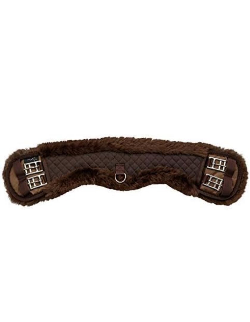 Equinate saddle girths are characterized by a particularly high wearing comfort and their individual material properties. They are always equipped with 100% stainless steel fittings. Due to their special cut, moon girths shift the course of the girth to the rear, resulting in better pressure distribution and maximum elbow freedom. This is especially beneficial for horses with a tendency to chafe in the elbow area. Often normal short girths are too far forward on these horses, a moon girth compensates for this and provides more freedom of movement in the forehand area. Wide cut for optimum pressure distribution Genuine lambskin with a wool height of approx. 30 mm Strap tabs Roller buckles Washable at 30°C Particularly cuddly Softly padded With stainless steel breastplate ring Quilted cotton and polyester fabric