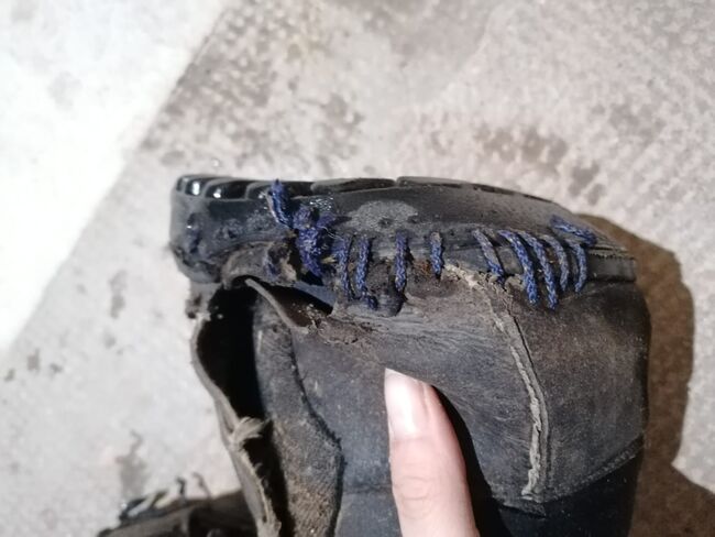 Equine Fusion All Terrain Gr 14 used - I am selling my pair of Equine Fusion Jogging Shoes All Terrain in size 14. These have been well used, both for riding and as paddock/sick hoof shoes. They therefore have a few imperfections. They have already been mended as the fabric has come away from the sole. Since then, however, they have held up well. They also have small holes in the lining. However, the sole is still very good and still has a good profile. Everything is visible in the pictures. I am offering them as my horse has unfortunately passed away. I know that they are no longer in the best condition. But maybe someone still has a use for them, for example as a sick hoof boot.