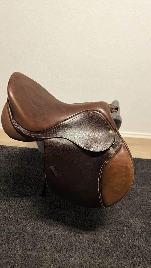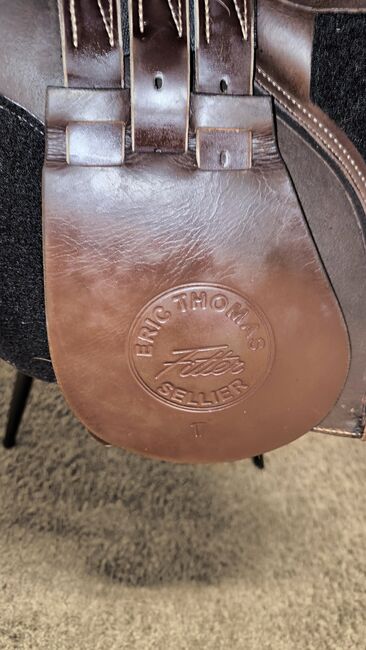 Eric Thomas Fitter 17 inch jumping saddle brown - This beautiful jumping saddle by Eric Thomas is for sale. Unfortunately it does not fit my Fjord pony. My saddler suspects that it was made in 2021.