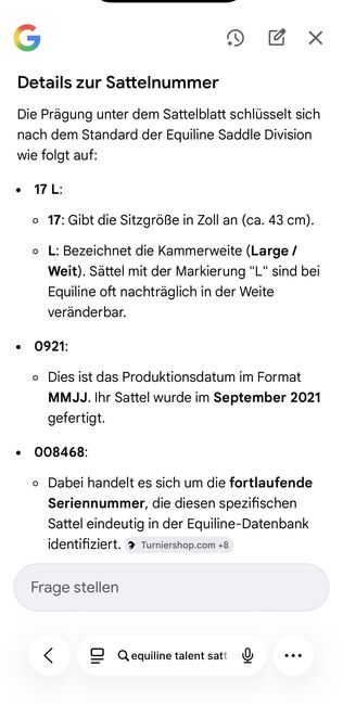 I bought the saddle directly from the saddler at the end of 2021 and have had it checked and maintained regularly since then.