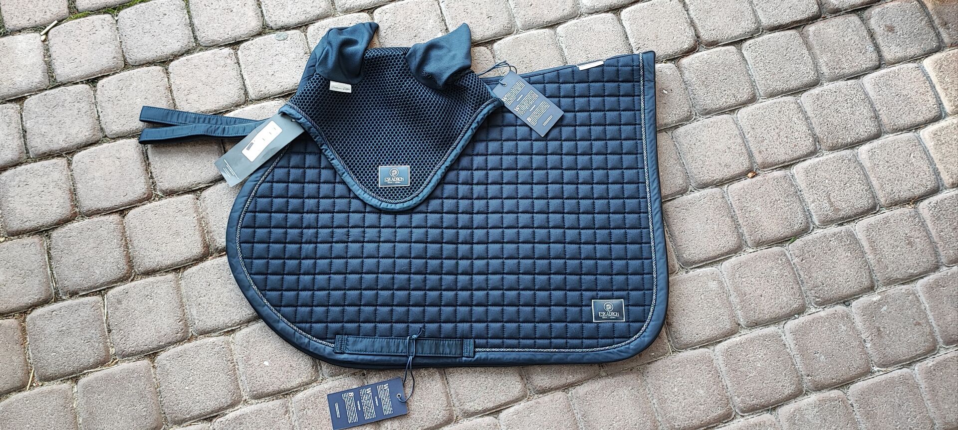 Eskadron set saddle pad Vs and fly cap WB Navy new with label - New Eskadron set with label