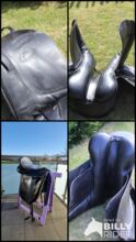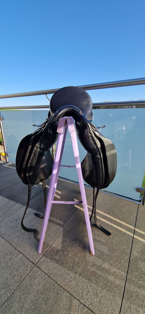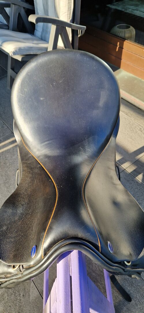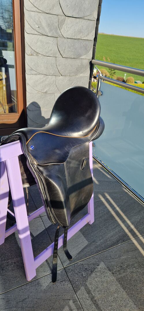 Euroriding Luxor dressage saddle - seat size 18" - I am selling my very well-maintained Euroriding dressage saddle. Luxor model with blue emblem. The saddle impresses with its deep seat and thick knee rolls, which allow a very stable and correct seat without constricting the rider.