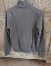 The sweater has a ribbed turtleneck with half zipper, long sleeves with ribbed cuffs and also a ribbed bottom hem.