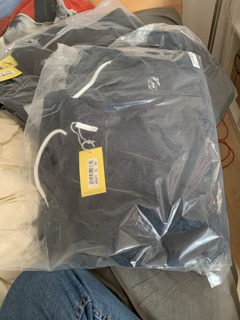 The jacket is size XL The following colors are available: Black, 2 times navy and a dark red (see the picture) Since they all still have their price tag and are in their original packaging, I would like to have 35 euros for the jacket.