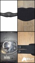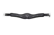 Anatomically shaped girth with elbow room and wide contact surface as well as two-layer elastic inserts on both sides for even pressure distribution. Made of robust, washable TPU outer material and soft, shock-absorbing memory foam padding, which yields under pressure and then springs back into its original shape. With 13 ventilation slots for optimum ventilation. Central D-ring and stainless steel roller buckles.