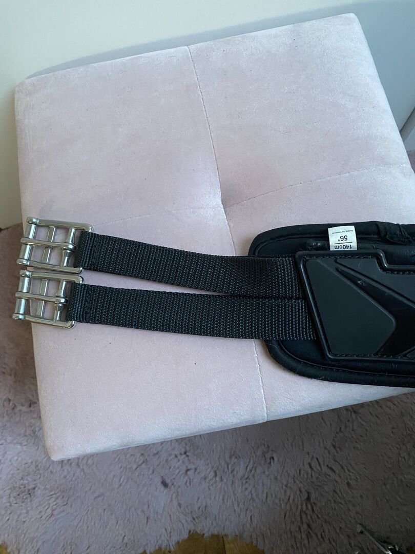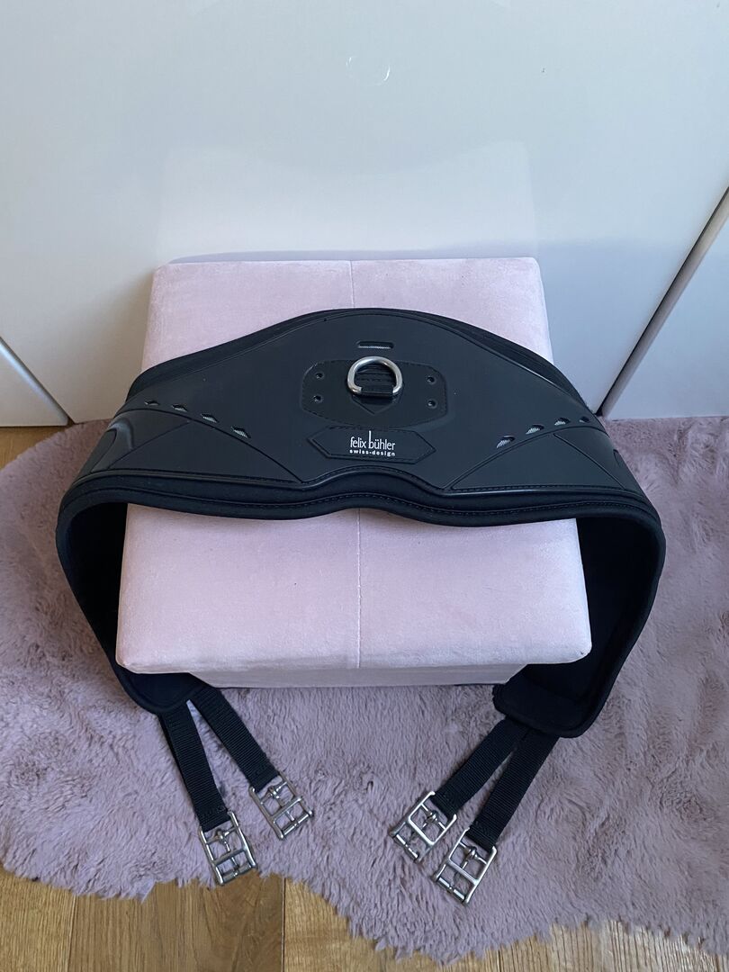 Felix Bühler Saddle Girth Long Girth 140cm TPU-Protection Memory Foam black - Hello, for sale is the TPU-Protection Memory Foam girth from Felix Bühler in 140cm. It is anatomically shaped and offers elbow room with a wide contact surface on the belly. The elastic inserts have been exchanged for inserts that are not elastic. The shock-absorbing Memory Foam pad yields to pressure and then springs back to its original shape. With 13 vents for ideal ventilation. The girth is very suitable for horses with sensitive girth. Unfortunately, there are two stains on the bottom that you can not remove. But this definitely does not interfere in the use of the girth. Normal signs of use present.