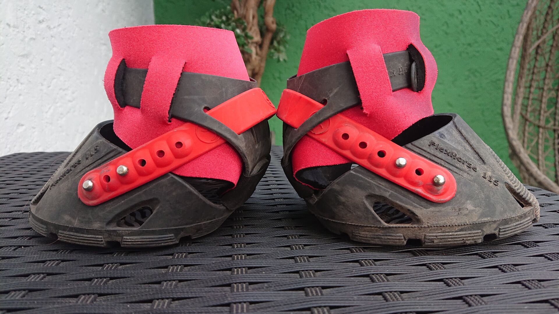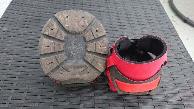 Flexhorse Flexboots hoof boots size 115 - Flexhorse Flexboots size 115, with red pad and red fetlock strap. Only little used, because unfortunately a bit too big and change to another model. Private sale. The sale takes place under exclusion of any liability for material defects.