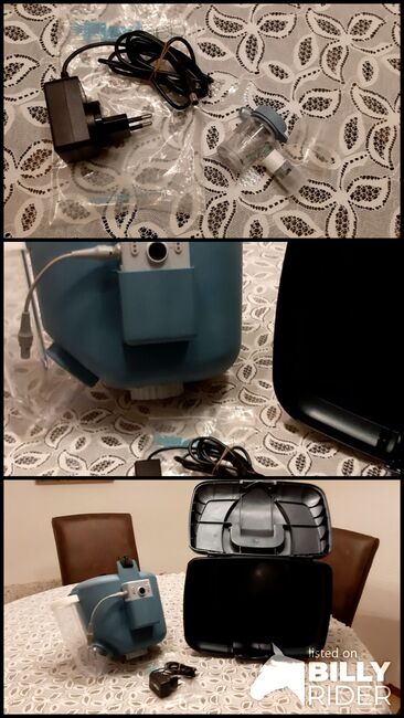 Flexineb E3 inhaler horse medi blue, size M for full and warmbloods - Flexineb E3 horse inhaler is in very good condition. The device was purchased new at the beginning of 2025 and used a total of 5 times on my mare. Unfortunately, she had an aversion to this inhaler from the beginning, so I stopped using it after the 5th time. The inhaler is in perfect, very good condition. It is sold with accessories incl. transport box/storage box. The item comes from a well-maintained household and was completely cleaned after use and stored at home in a warm place. This is a private sale, therefore no guarantee, warranty or return.