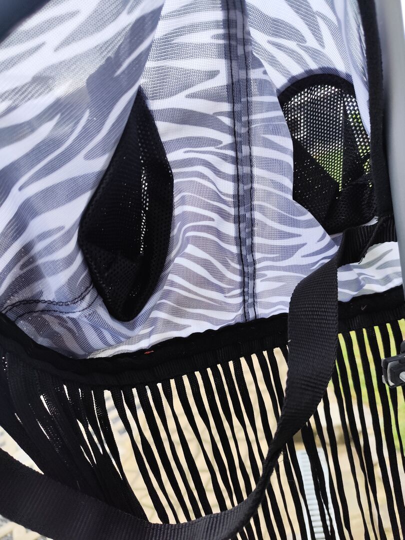Fly hood with fringes by Irish Innovation - Hello, we are selling a fly hood with fringes from the company Irish Innovation. It is new! Unfortunately much too big for our mare. Size is X-WB. (Warmblood).