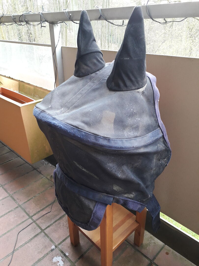 Fly mask Harrison Howard Maskology Ultimate - Selling a black fly mask Maskology Ultimate by Harrison Howard. Slight signs of wear, but overall good condition. The fly mask is made of a UV-resistant fine nylon fabric and offers very good protection against UV radiation and insects. The lightweight, micro-woven material around the ears, the spacer ring over the eyes and the removable nostril protection offer additional comfort. Secure double fasteners for a good and flexible fit. Size: Large Private sale, no return or guarantee. Shipping possible, costs to be borne by the buyer Payment by bank transfer or Paypal