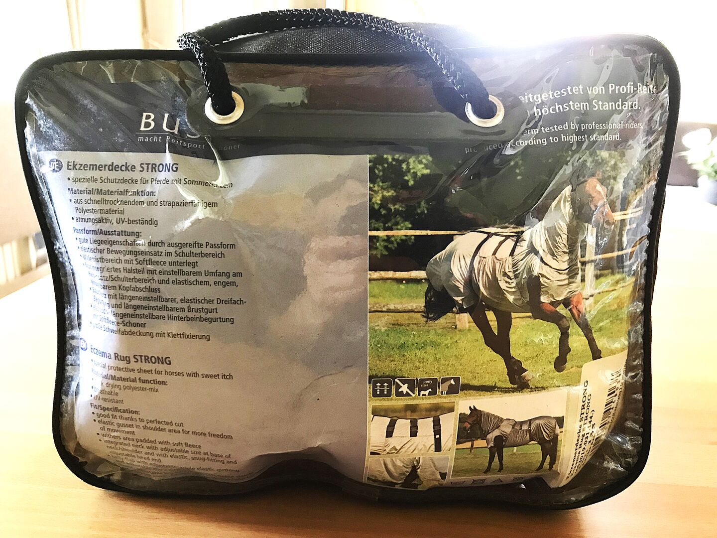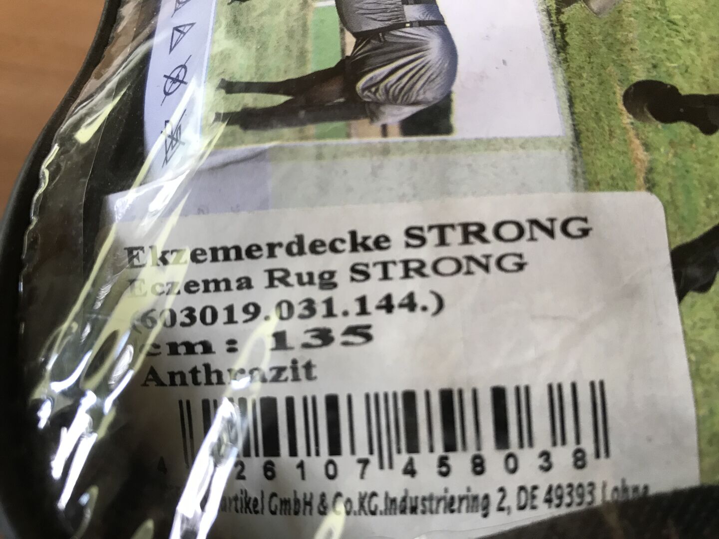 For sale Busse eczema rug Strong in size 135cm - The eczema rug Strong in size 135cm and the color anthracite is originally packed and new. It has not yet been unpacked! There is only a small tear in the lower edge of the packaging bag (see picture). The rug is a special protective rug for horses with sweet itch. It is made of quick-drying and hard-wearing polyester material and is breathable and UV-resistant. Unfortunately, I missed the return date, so I am now selling the rug this way.