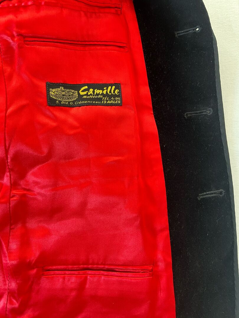 Gardian jacket size 52 - Original Gardian jacket, approx. men's size 52, black cotton velour with 2 outside and 4 inside pockets by "Camille" from Arles. Length 78 cm, width to shoulder seam: 44 cm, sleeve length: 65 cm. Used, but in top condition.