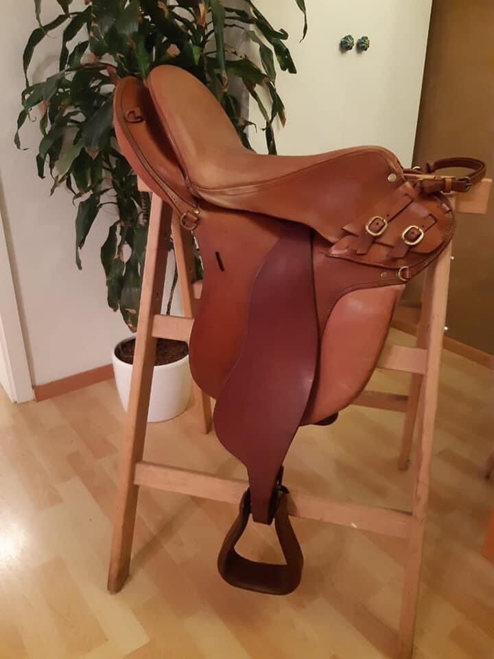 For sale is a French endurance, trail riding, trekking saddle brand Gaston Mercier. Comfortable and durable. Suitable for narrower horses and Arabians, dimensions see photos. In good maintained condition, with minor signs of use (see photos). Seat size should be 17.5 inches.